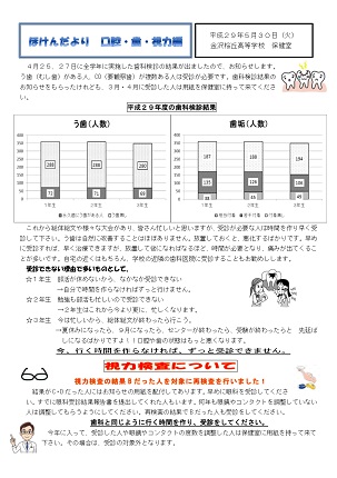 2017年5月31日 13時50分保健だより 口腔・歯・視力編を掲載しました。