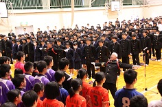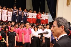 続いて学校長から、逆境であっても打ち勝つ諦めない気持ちで大会に臨むこと、そのためには支えてくれる多くの人々への感謝の気持ちを持つことが大事であり、感謝の心が思いがけない力を発揮させる、という旨の激励の言葉がありました。