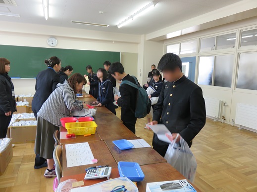 入学予定の生徒たちは春休み課題の点検を行った後、制服やシューズなどの物品引換が行われました。生徒たちの表情も笑顔で、期待に満ちた様子でした。