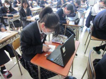 【春の読書週間(4/22~5/6)】中の図書館恒例イベントである「第1回 POP講習会」をうつのみや書店さんのご協力のもと、開催しました。4/25(木)の放課後に図書委員と一般生徒の希望者(52名)が参加し、講師からキャッチコピーを考えること、用紙の中を枠で区切ることで、目立たせることができるというテクニックなどのレクチャーを受け、実際に紹介したい本についてPOPを作成しました。