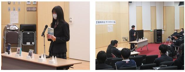 ビブリオバトルは(今回は5名の)図書委員の生徒が、それぞれ好きな図書を選び、その書評(プレゼン)を行い、誰がいい発表を出来たかを競うものです。