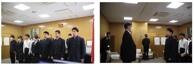 4限目終了後の12:30から、校長室において、北信越新人大会に出場する部活動に対しての激励費授与式を行ないました。