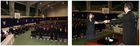 皆勤賞授与式・生徒会功労賞・三桜賞表彰式・同窓会入会式