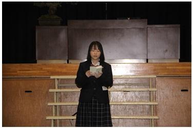 卒業生を代表して小林るりさんが3年間の思い出を込めた答辞を述べました。