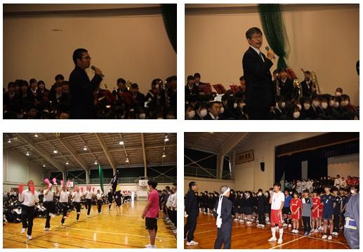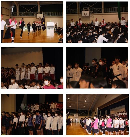 4日間の1学期中間試験が終了し、令和5年度総体・総文壮行式が第1体育館で行われました。全校生徒が集まる、対面での壮行式は3年ぶりで、校歌指導や応援団を結成しての応援練習などが、どこか新鮮な感じを与えているようでした。