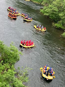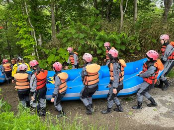 2日目はラフティングから始まり、生徒たちは川下りに苦労しながらも自然を満喫していました。