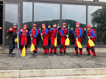 2日目はラフティングとクラス別研修の後、北海道ボールパークへ行きます。