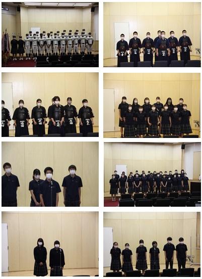 その後、全国総体に勝ち進んだ剣道部の他、全国総文祭に参加する筝曲部・新聞部・文芸部・郷土研究部及び全国高校野球選手権大会石川県大会に出場する野球部、石川県吹奏楽コンクールに出場する吹奏楽部、NHK全国高校放送コンテストに出場する放送部の壮行式が行われました。
