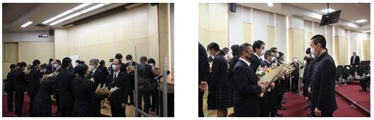 生徒を代表して、生徒会から花束が贈られました。