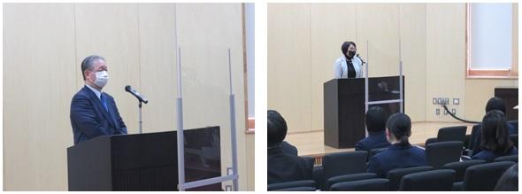 同窓会入会式では、宮二朗同窓会副会長からご挨拶をいただきました。また、倉本事務局長から同窓会の説明と連絡があり、同窓会クラス幹事が発表されました。
