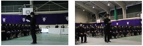 正村校長先生から、一流選手のパフォーマンスの波についての話を交えながら、温かい激励の言葉とともに特別強化費が手渡されました。