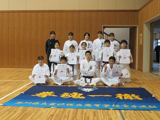 2021年11月11日 11時46分10月23日・24日に行われた石川県高校空手道新人大会において、本校空手道部が団体種目4種目全てで準優勝を飾り、北信越新人大会に出場を果たしました。個人戦では北信越大会出場は果たせませんでしたが、目標の団体戦で結果を残すことができ、さらに全国選抜大会出場を目指して頑張っていきたいです。