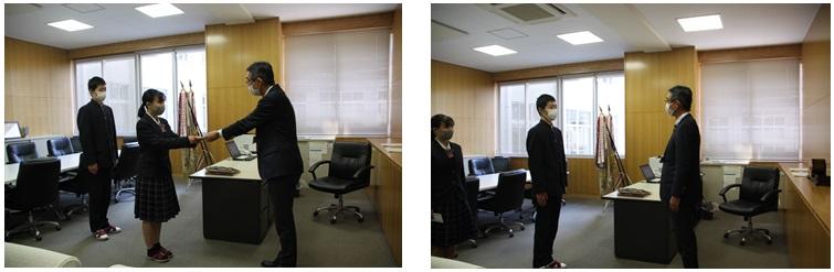 本日12:30、校長室において北信越新人大会激励費授与式が行われました。
