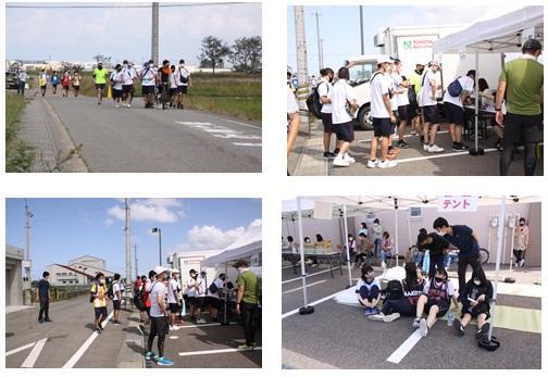 9:35、先頭集団が無事に第1関門(内灘町総合公園)に到着しました。天候も回復し気温も急上昇しています。自己の体調を把握し、セルフコントロールしながら完歩を目指します。