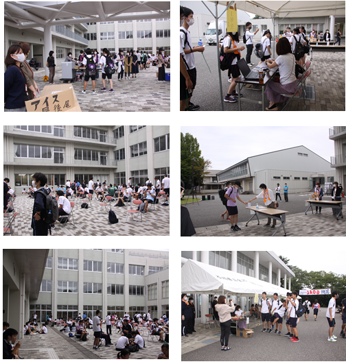 2020年10月3日 13時59分生徒たちも続々と帰ってきました。ゴールではPTAの方からアイスクリーム・シュークリーム・ゼリーを受け取り、互いに労をねぎらっていました。