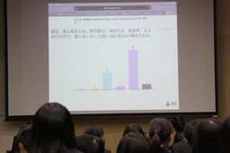 参加した生徒へのアンケートをICT活用でリアルタイムで集計するなどし、パネリストだけでなく参加した生徒の意見なども取り入れながら有意義な話し合いが行われました。