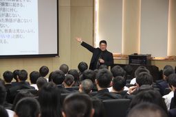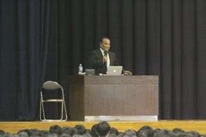 舟橋先生は、講義・ゼミの内容や学生の質が大学により差が激しい現実を踏まえ、将来を見据えて慎重に大学を選んで欲しいと話されました。また、専門の経済学的な視点からもお話しいただき、生徒たちは真剣に聞き入っていました。