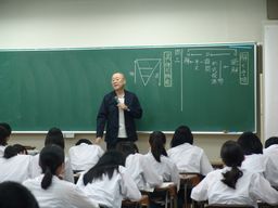 生徒は授業に引き込まれ熱心に受講していました。講義後には講師を交えて参観した教員の質疑応答が行われ、予備校での授業の進め方や新テストの対応についてお話を伺うことができました。