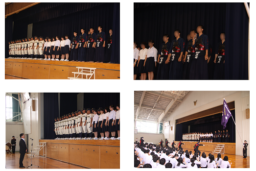 その後、全校生徒からのエールを受け、選手たちは闘志を漲らせて会場を後にしました。