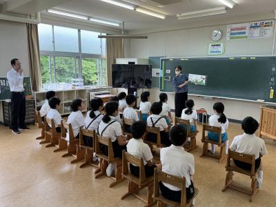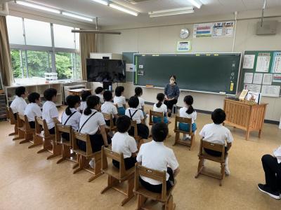 まずは、「オオカミのひみつ」でした。威張っているオオカミなのに小さいしゃくとりむしが苦手。次に、「いうなのじぞう」から「おまえいうなや」を語り部調で聞きました。3・4年生は引き込まれるように聞き入っていました。