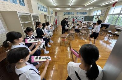 4・5・6年生の鼓笛練習が始まっています。校歌や今年度の曲「銀河鉄道999」、校内中に響き渡っています。運動会での本番に向けて、みんな真剣に楽器の演奏やフラッグを操っています。指揮者を中心に、心を一つにして素敵な演奏になることを期待しています。