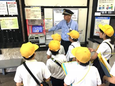 4年生の総合的な学習のテーマは「福祉」です。羽咋市内のバリアフリーやユニバーサルデザインを探しに、羽咋駅と羽咋市役所で校外学習をしてきました。これを起点に、1年間の福祉の学習が始まっていきます。