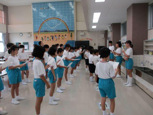 運動会を盛り上げる応援の練習が始まりました。赤団のスローガンは、「みんなで団結 つかもう!優勝と絆」白団のスローガンは、「稲妻のように輝き勝利に突き進め 白団」です。各団の団長を中心に、かけ声や拍手の練習を頑張っていました。練習を通して各組の結束力を高め、運動会本番で発揮して欲しいと思います。
