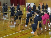 「別れの言葉」の練習では、静かな雰囲気の中、卒業生の第一声「さわやかな風が・・・」から始まります。一つ一つの言葉に心を込めて、しっかりした声が出せるように頑張っています。