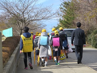 いつも一緒に歩いてくださる「見守り隊」のみなさんに