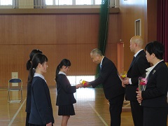 お世話になった先生にお礼の言葉と花束を渡しました。