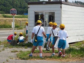 「通学路をきれいにして,感謝して通学しよう!」を目的に,縦割り班ごとに通学路のゴミを拾いにいきました。