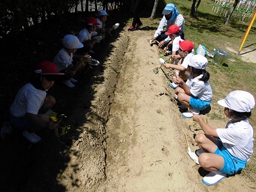 1年生は,待ちに待ったさつまいもの苗を植えました。
