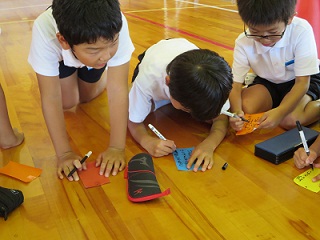 みんな,教室の端から端まで届くような長さの紙を作ることができました。
