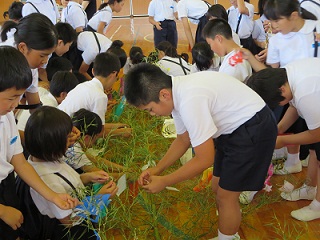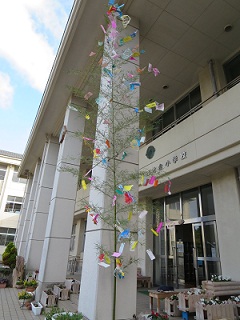 次は,全校で短冊に願いを書いて,七夕飾りをしました。