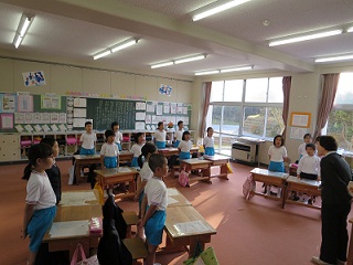 それから,全校児童でお礼の気持ちをこめて「Smile Again」を合唱しました。