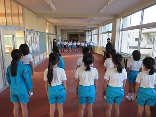 3年生と4年生は向かい合って,きれいな二部合唱で歌っています。