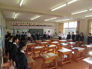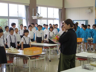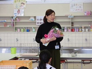 校長先生の紹介のあと,児童を代表して図書委員長から花束とお礼の言葉を贈りました。