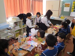 答えるゲームをしました。次に,子どもたちがカードの絵を見て,講師に身