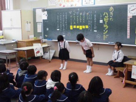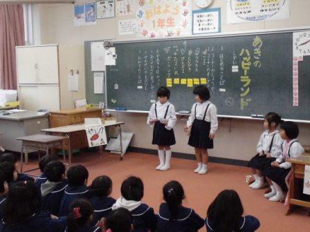 1年生は頑張りました。あいさつやコーナー紹介 りりしいですね。