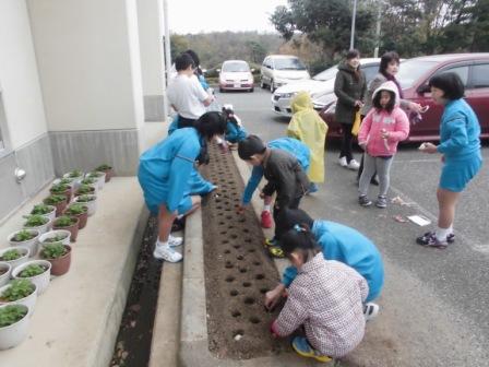 この後、5年生(来年春には6年生)とチューリップの球根を植えました。