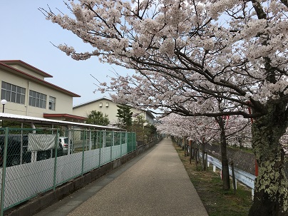 校舎すぐ傍には大聖寺川が流れ、春は桜並木がとてもきれいです。