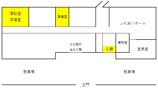 校舎正面、右側の玄関よりお入りください。