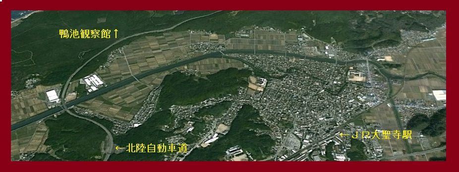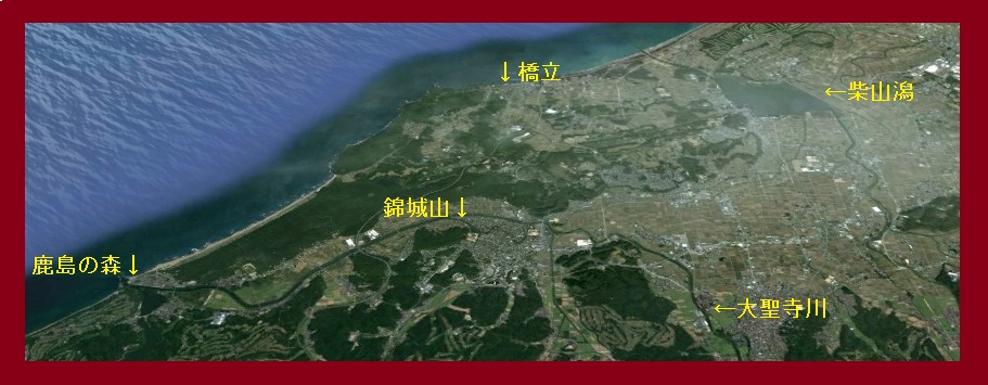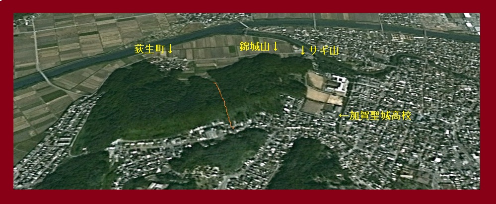 錦城山からみた聖城高校 奥には江沼三山が見えます |