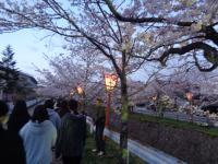 生徒の皆さんは、夜桜を見ながら、大聖寺の歴史について学びました。