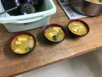 タンパク質摂取の重要性をお話された後、油揚げと夏野菜たっぷりのお味噌汁がふるまわれました。