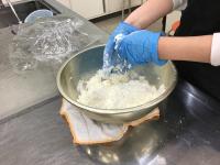 中力粉に塩水を加えて、塊(生地)をつくります |