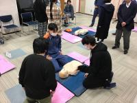 生徒たちも複数体制での救護を想定して 心肺蘇生を学んでいます |