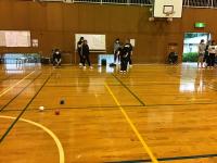 個人戦はバドミントン(ダブルス)、団体戦はボッチャを行いました。