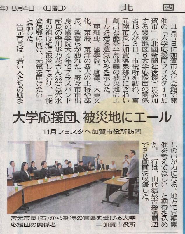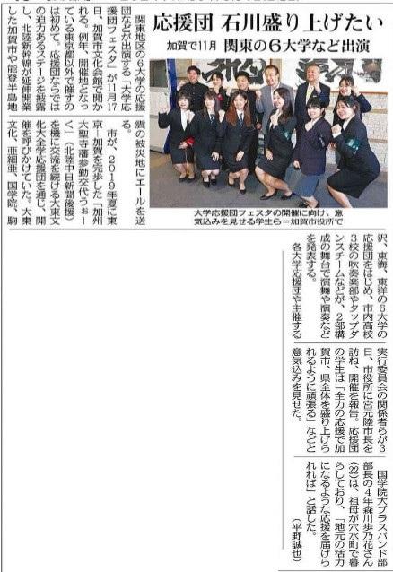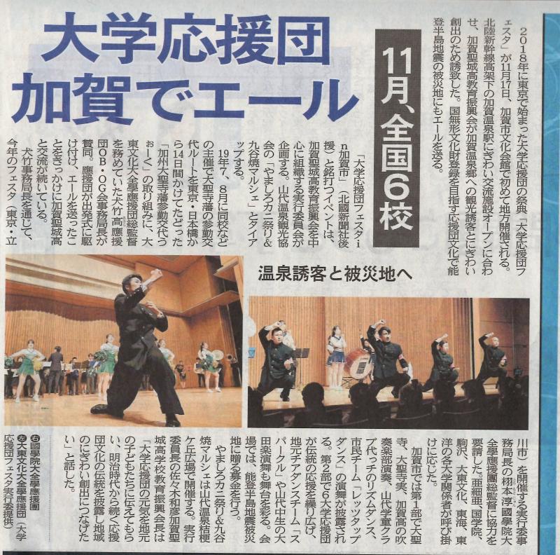 11月17日(日)に加賀聖城高校教育振興会が主催して開催する「大学応援団フェスタ」について、北國新聞・北陸中日新聞で紹介されました。