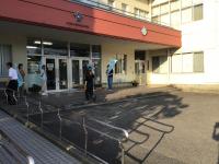 生徒玄関前に避難し、校長先生のお話を聞いています |